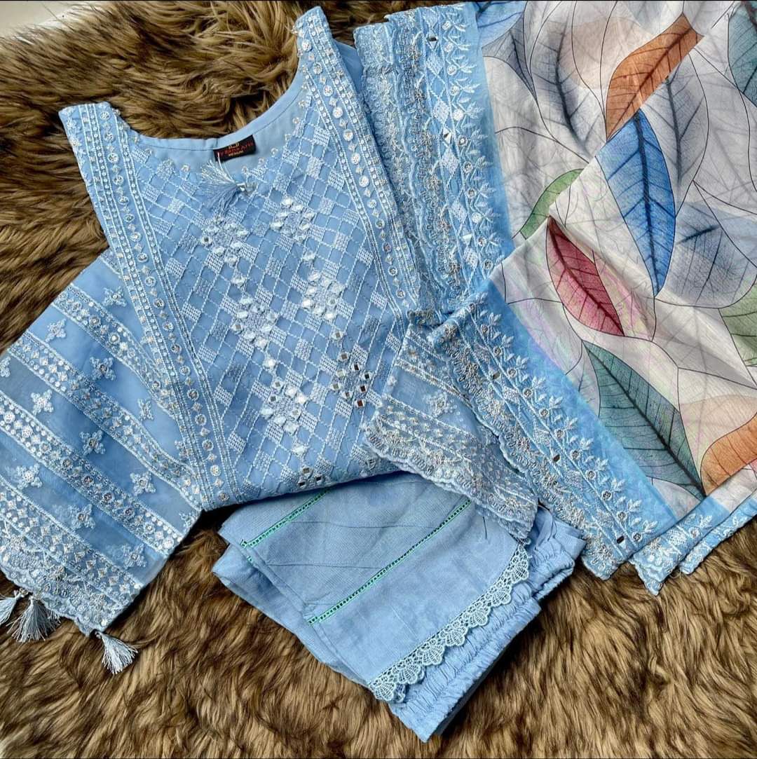 Dupatta: Embroidered & Digital Printed Contrast Organza Dupatta